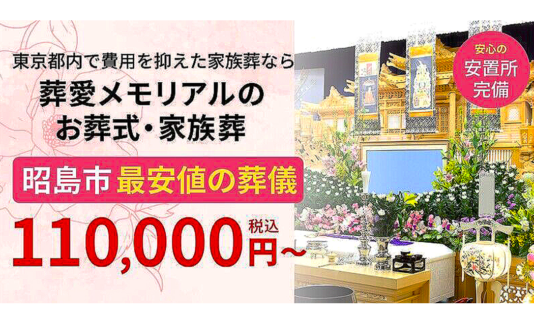 | 当社の特色 | 葬愛メモリアルは、昭島市を中心に家族葬・一日葬・火葬式を明朗価格でご提供。24時間365日いつでも無料相談、安置室・冷蔵設備も完備。専門スタッフが費用や流れを一つひとつ丁寧にご説明し、安心のお見送りを支えます。 |